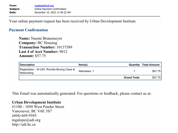The same BC Housing Employee charged their attendance at a UDI Boxing class to the taxpayer: