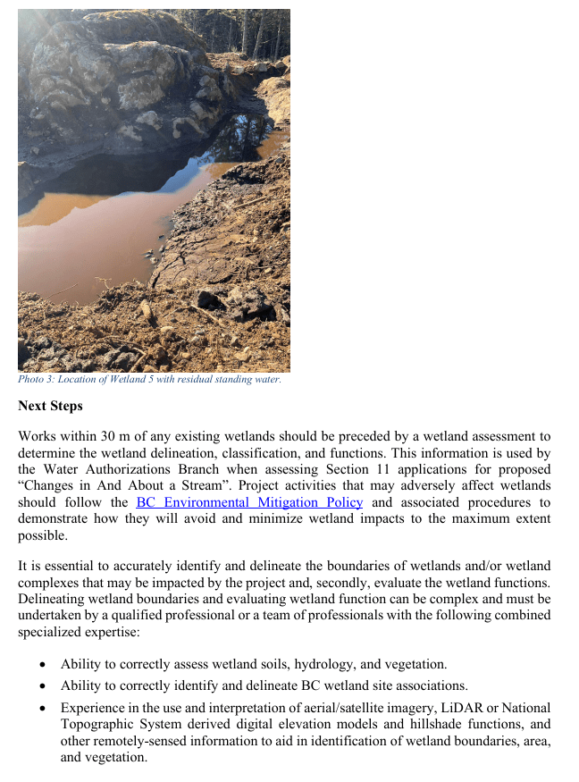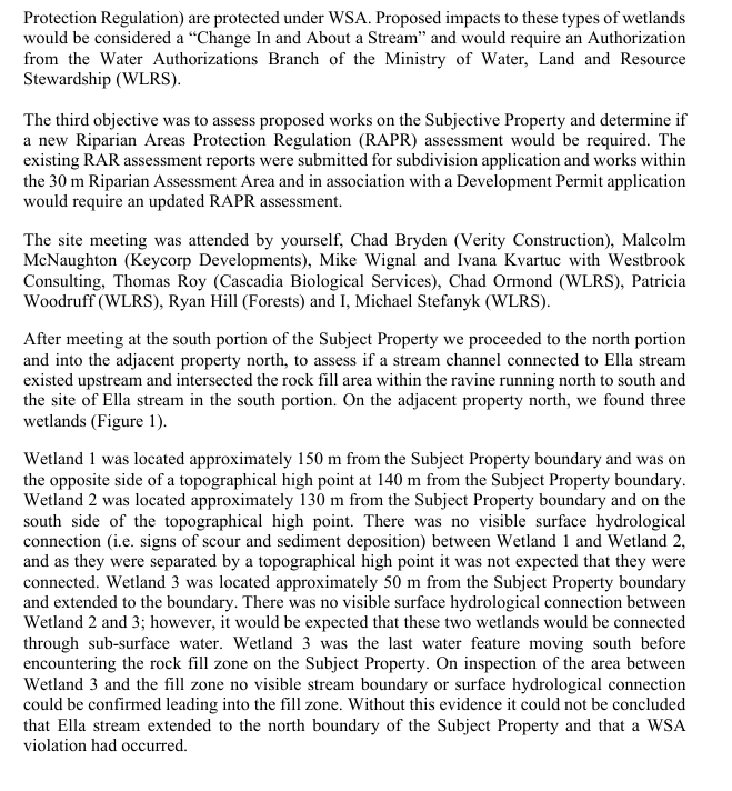 How can you say that there are no enforcement issues that would require DFO’s involvement? There is a giant pyramid-sized mound of fill on top of the Ella Stream, where there was none before, and in one of Provincial reports that you provided, it noted that the stream’s length has lessened.