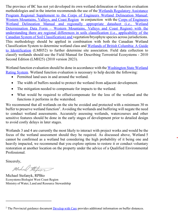 I was not personally involved in any conversations between District, Provincial or Federal staff so I am unable to confirm. Provincial staff may have worked with Federal staff on the property in question but you would need to follow up with Provincial staff to confirm if or how they engaged with Federal staff when reviewing the Ella Stream situation prior to providing District staff and the developer guidance on next steps to be followed by the developer.