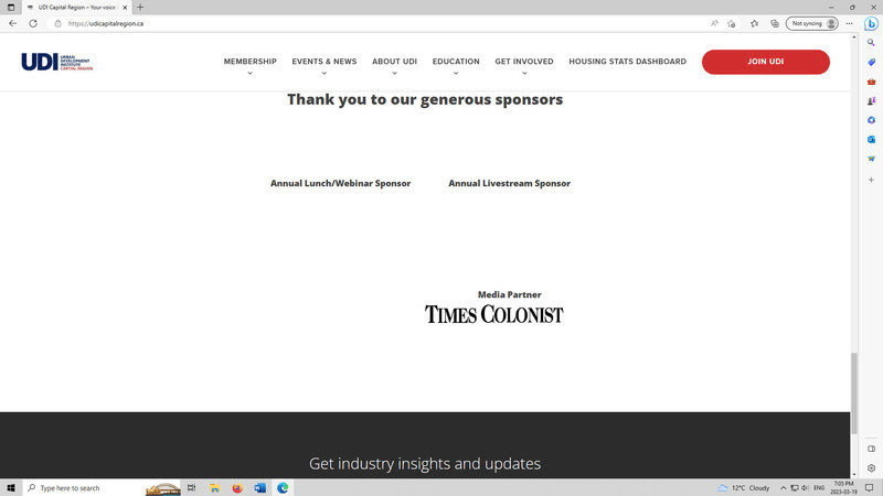 Above: Screenshot from the UDICapitalregion.ca before it was pulled down at the end of 2023. The Times Colonist at the time was a paying member, media partner and sponsor the Urban Development Institute (UDI) a registered lobbying organization for billions of dollars of corporate interests in real estate and development.