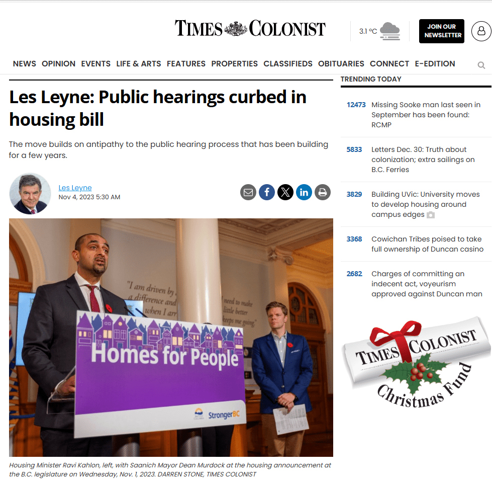 Opinion: Public hearings curbed in housing bill – Victoria Times Colonist