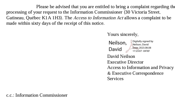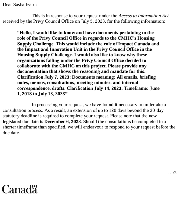 I received the Access to Information response, 2 days after the extended deadline, on Dec 8, 2023, albeit it came with a major amount of fine print about what it may not include:
