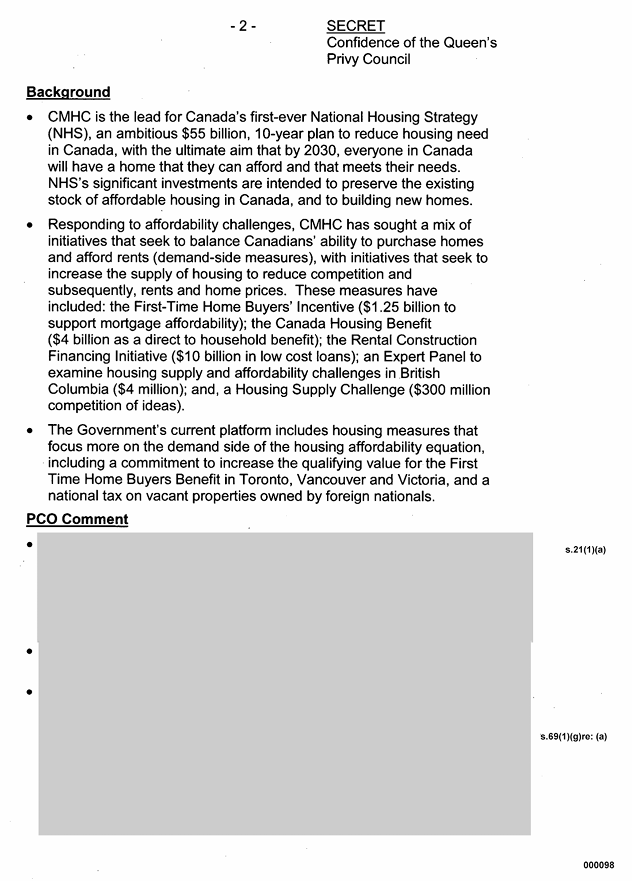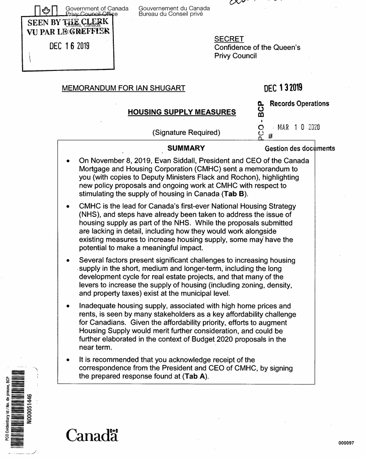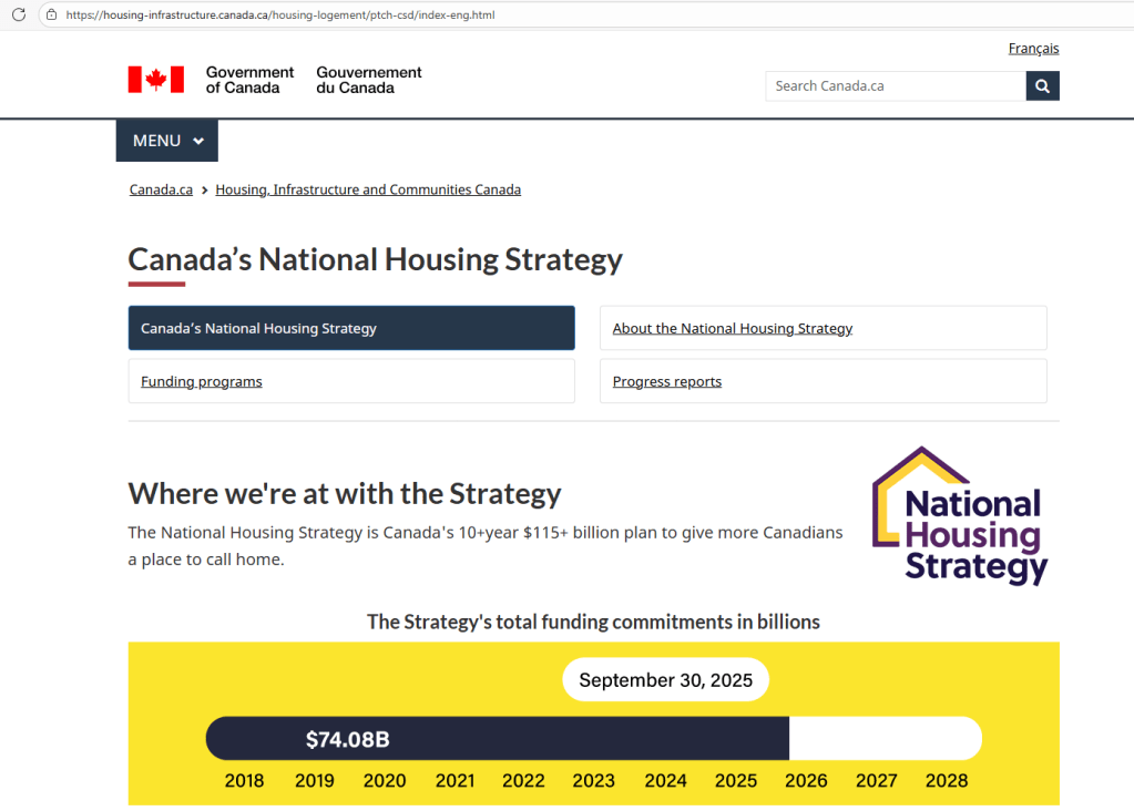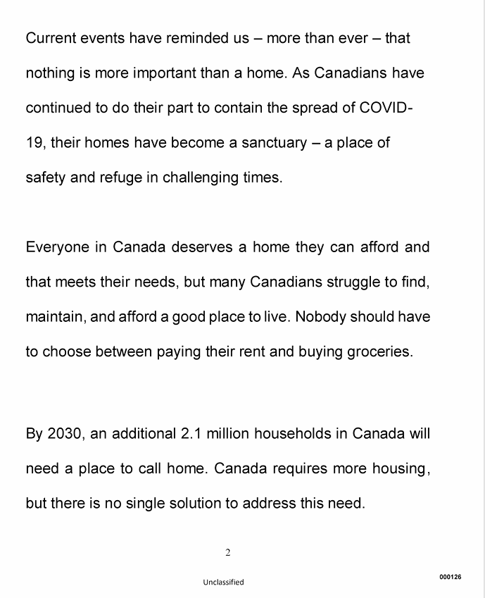 The 2nd page of the above document mentioned the National Housing Strategy (NHS) which at that point was targeted for $55 billion dollars. It has since ballooned to more than twice that, at a projected $115 billion dollars.
