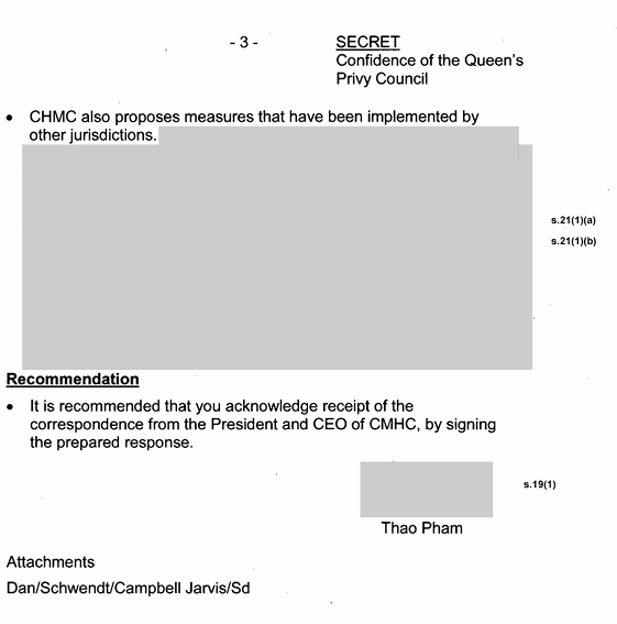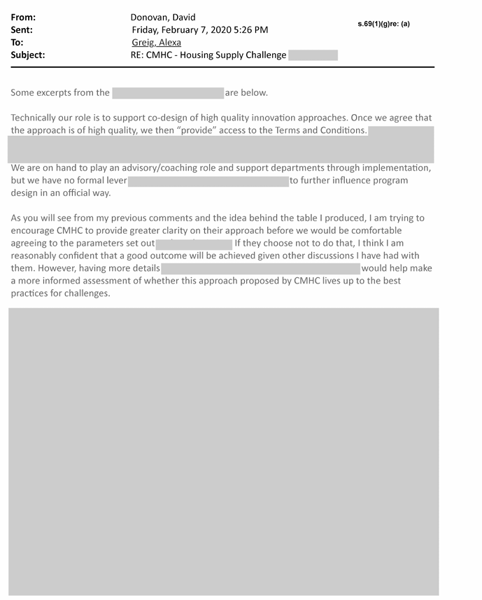 In the above document (2 pages), mostly censored. A person asked for more details to make an informed assessment if what the CMHC was proposing fit best practices.