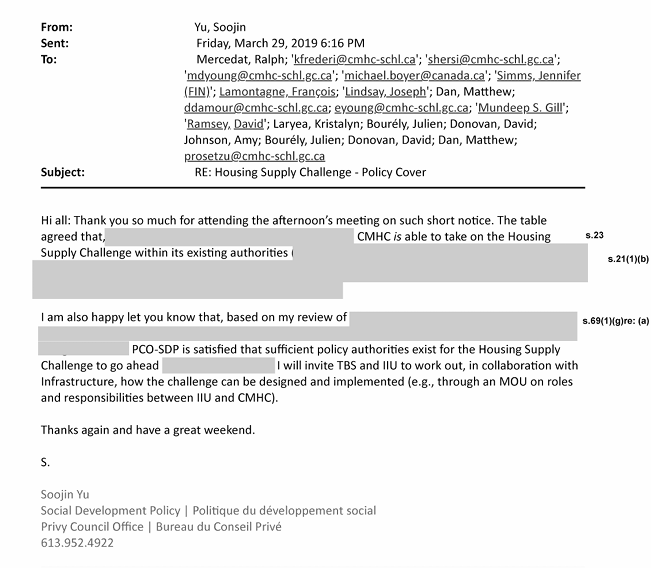 ‘’Hello, I would like to know and have documents pertaining to the role of the Privy Council Office in regards to the CMHC’s Housing Supply Challenge. This would include the role of Impact Canada and the Impact and Innovation Unit in the Privy Council Office in the Housing Supply Challenge. I would also like to know why these organizations falling under the Privy Council Office decided to collaborate with the CMHC on this project. Please provide any documentation that shows the reasoning and mandate for this.’’