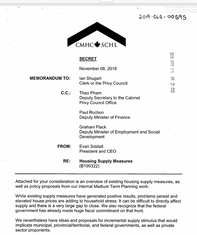 Note: In the beginning of the first page of this above document, it mentioned the CMHC’s intention of stimulating the housing supply.
