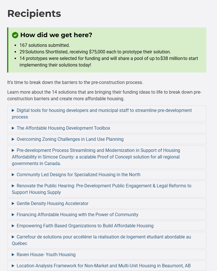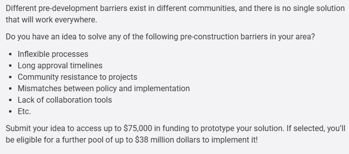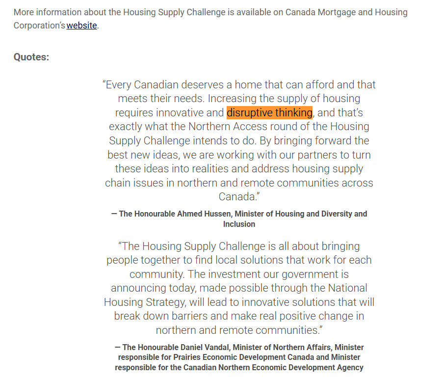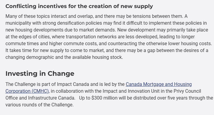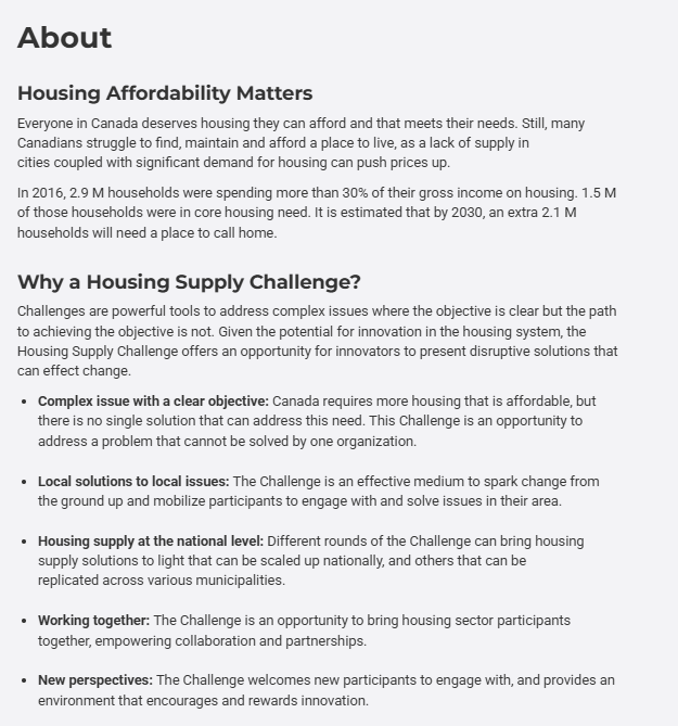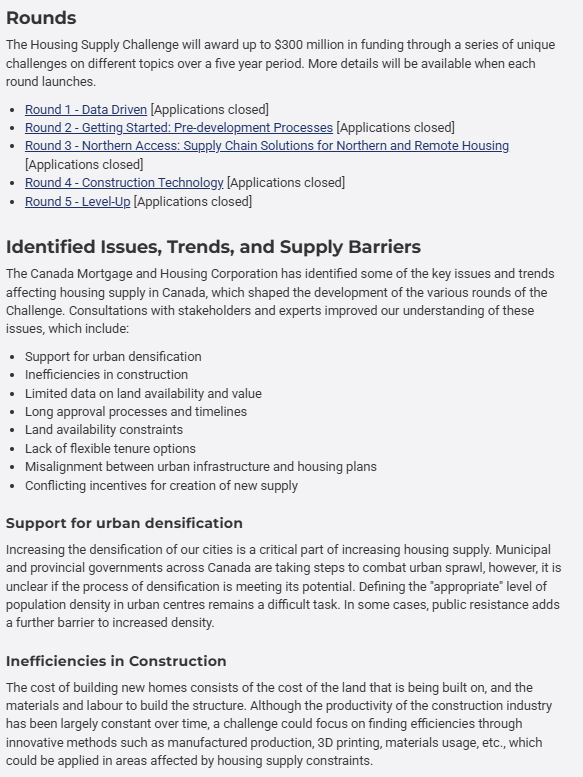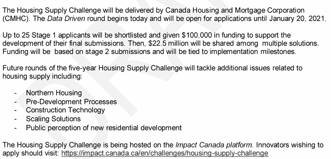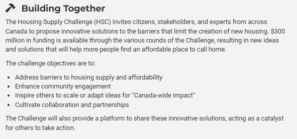Below are an excerpts from: Housing Supply Challenge: Round 2 – Getting Started | Impact Canada