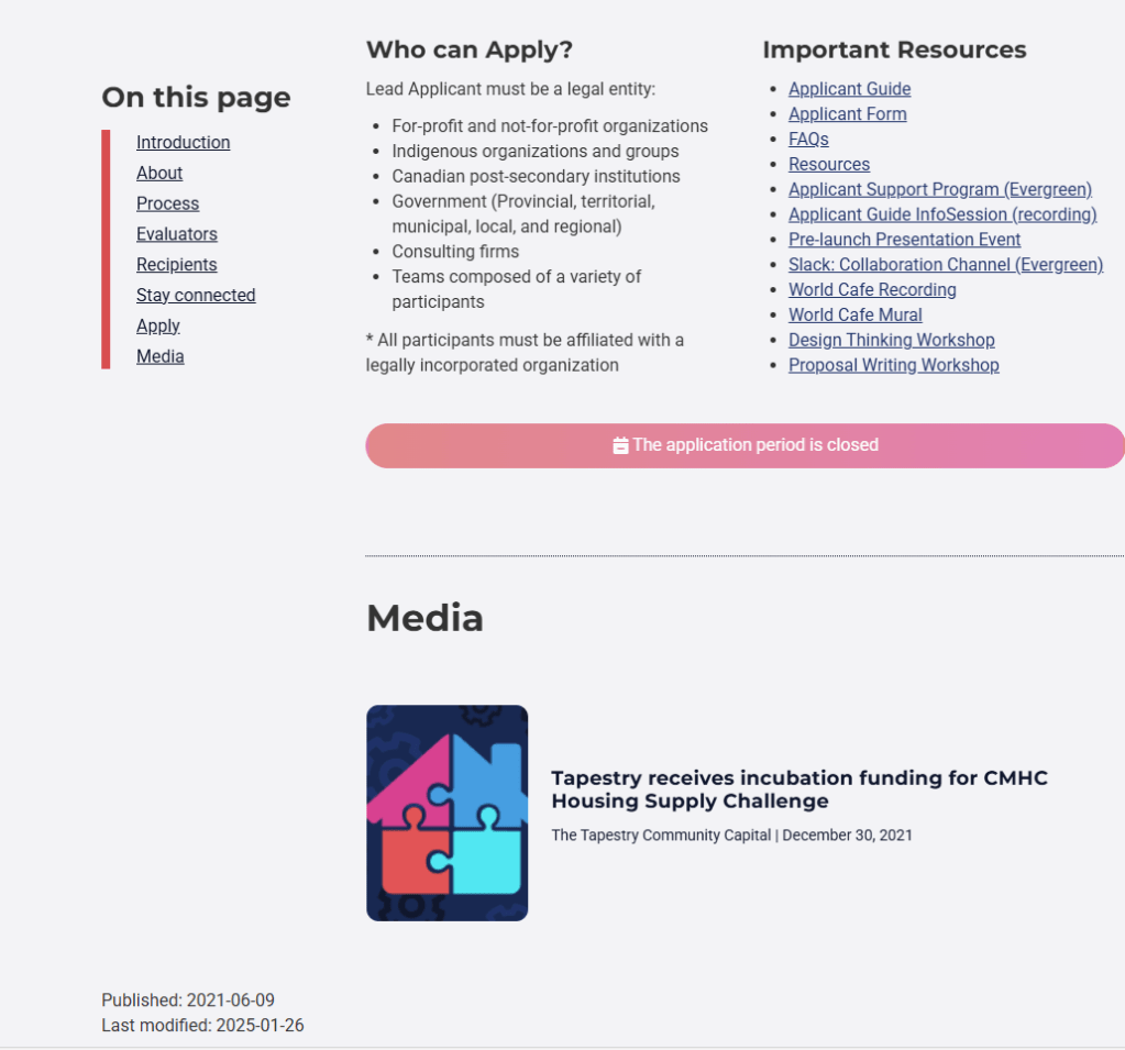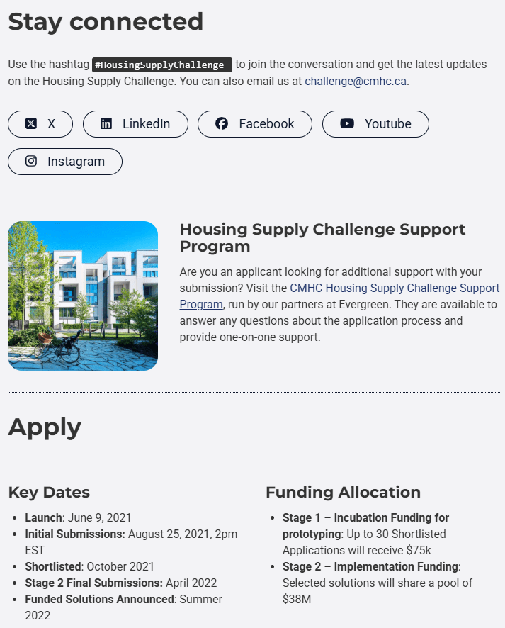 The 300 million dollar Housing Supply Challenge was part of the 115+ billion dollar National Housing Strategy (NHS) of Canada.