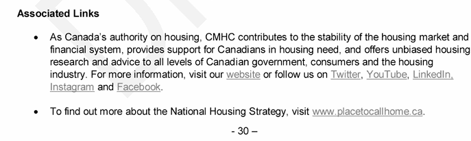 Below that, under associated links is a text saying the CMHC “offers unbiased housing research and advice to all levels of Canadian government, consumers and the housing industry.”