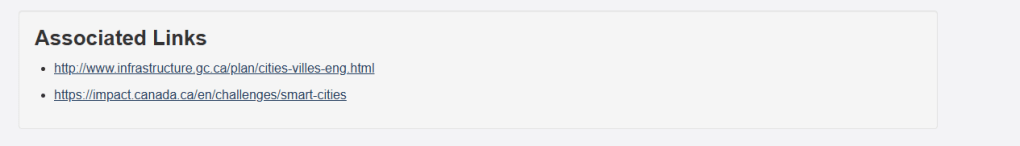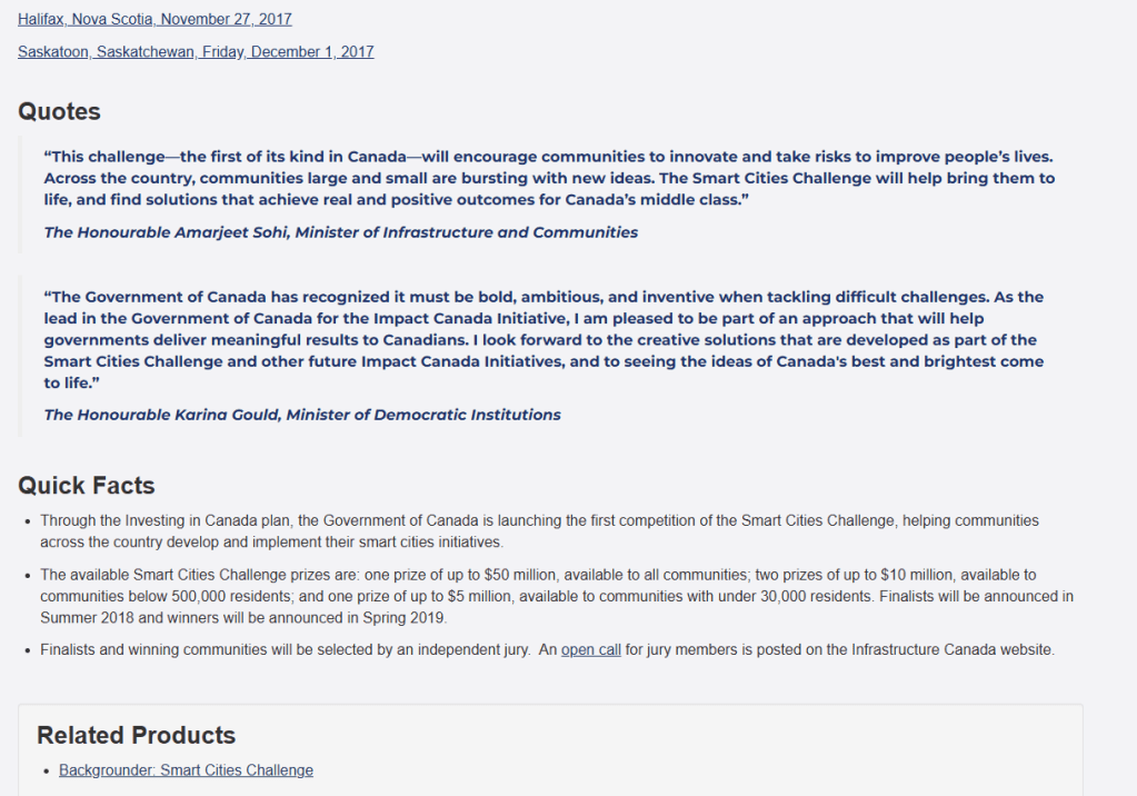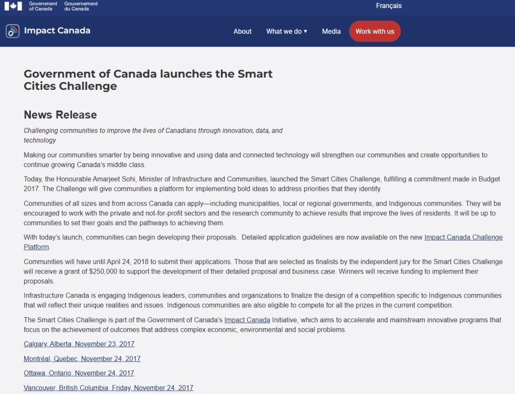 Note, Impact Canada’s involvement with Smart Cities, mentioned above.