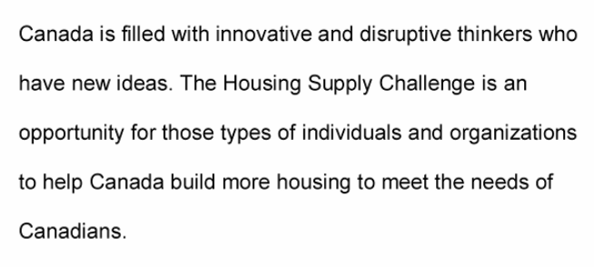 The Housing Supply Challenge will bring forward the best new ideas with the funding to turn those ideas into realities that can address housing supply issues in Canada.”