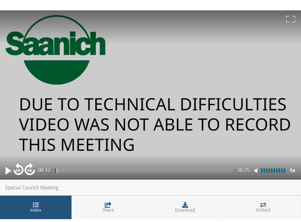 Now over a month later a video of an important Saanich meeting on Jan 19, 2026 is at the time of writing unavailable to the public.
