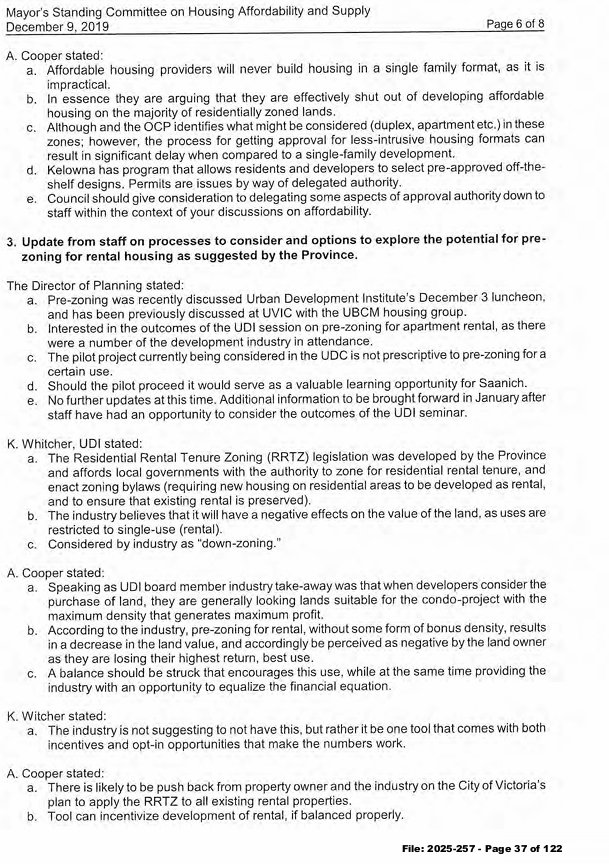 One of the results of outcomes of the Mayor’s committee during Haynes’ term was the creation of the Saanich Housing Strategy Task Force, referred to as a “stakeholder task force”, which was stacked with those involved in development and real estate, with a major presence from the UDI, and involved with UDI companies and organizations. The “Task of the Committee” was to “act as an advisory body to support the development of a Housing Strategy”.