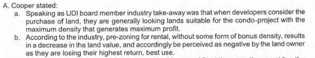 I’m not sure what maximizing developer’s profits has to do with housing affordability, but it was certainly an issue raised by Cooper on the mayor’s committee: