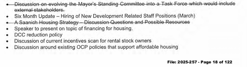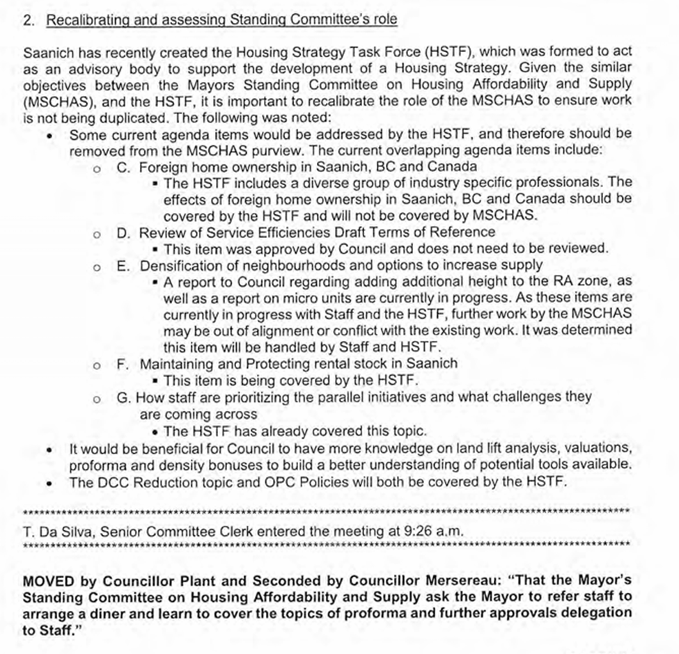 Looking to see the back story of this committee, I subsequently made an FOI about the committee and its predecessor, the Saanich Mayor’s Standing Committee on Housing Affordability and Supply.