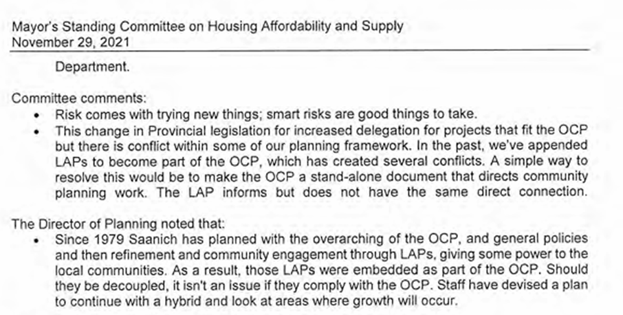 The development lobby proposed decoupling the Saanich Local Area Plans from the Official Community Plan. They got what they wanted 2 years later. – CRD Watch Homepage