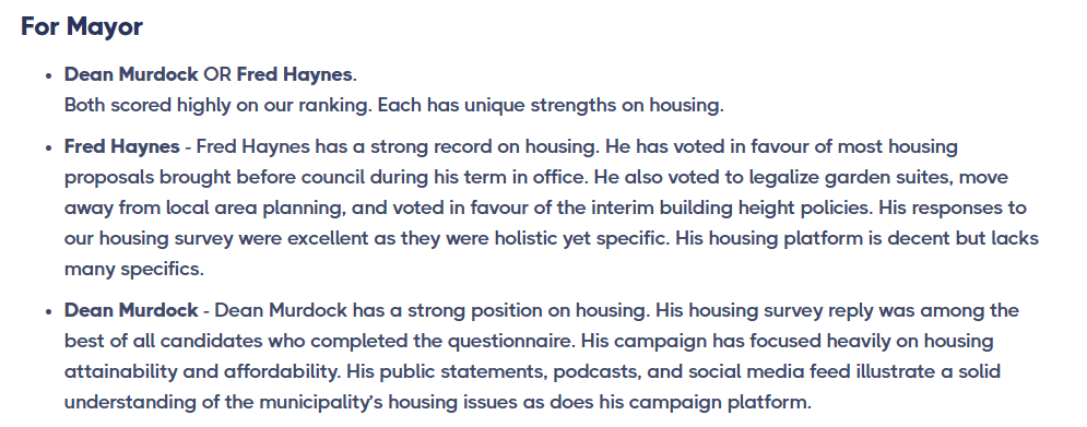 During the last election, both Mayor Murdock and Fred Haynes were both supported for Saanich Council by another pressure group for development Homes For Living, one of the founders of which real estate analyst Leo Spalteholz, was one of the members of Saanich’s Housing Strategy Task Force.