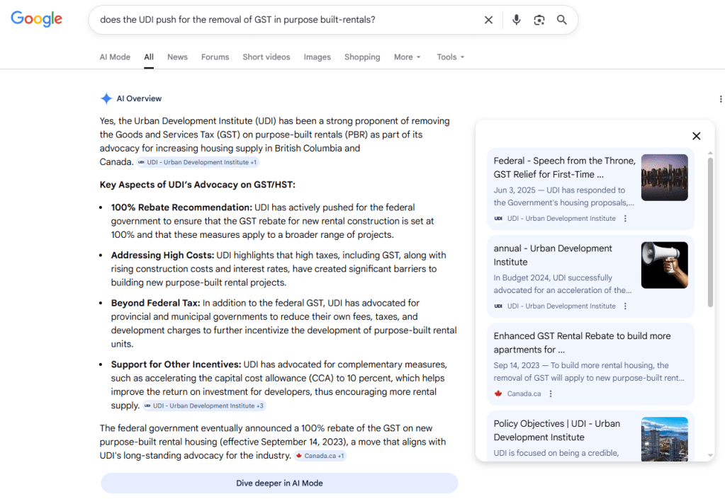 Appendix 3: I asked Google’s AI: Does “the UDI push for the removal of GST in purpose-built rentals?