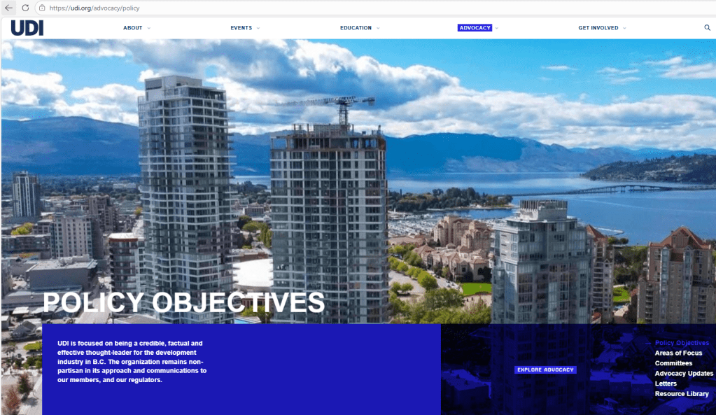 The following is from the UDI’s Annual Report 2023-2024 in which it showed its advocacy (lobbying efforts aimed at the various levels of government), something which it did not include in its 2024-2025 report.