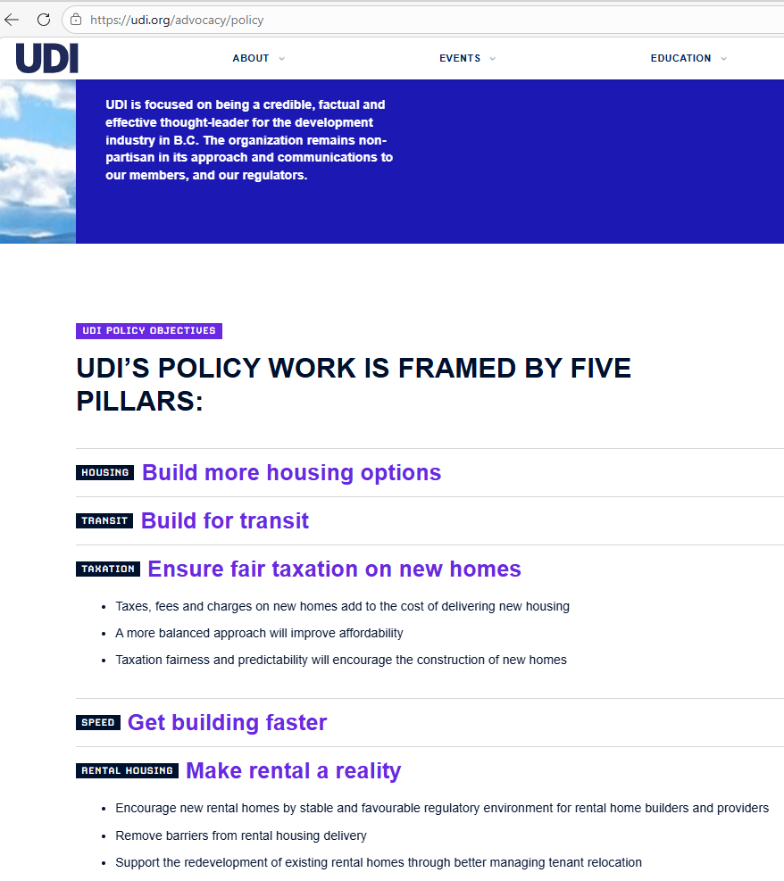 The Premier admitted that the UDI’s advocacy played an important role in the creation of the housing targets at his UDI Luncheon with the so-called Condo King Bob Rennie at the Hyatt in October. He also stated to Rennie at the Luncheon quote: “We have taken big political risks around expanding fast access to density and forcing municipalities that are opposing density to take it.”