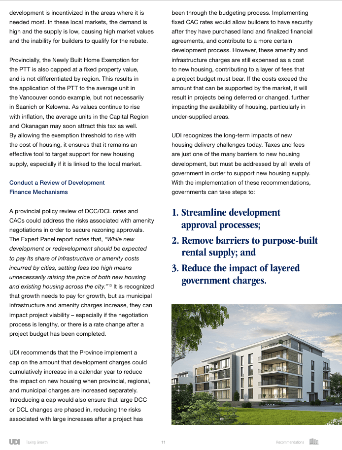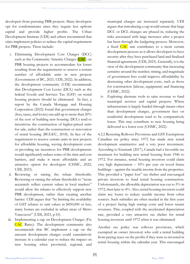 The UDI lobbies for the reduction of CACs on purpose-built rentals. (See Appendix 4).