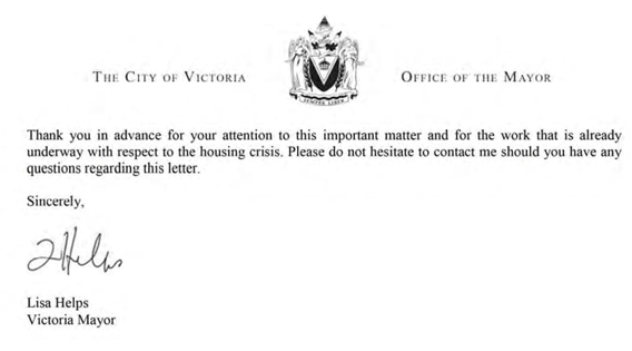 In the letter Helps mentioned the UDI was one of her sources of information, as well as Landlord BC, and BC Housing. Helps after being Mayor went on to be the Housing Solutions Advisor to the Premier of British Columbia, and also played a key role in the setting of BC Builds part of BC Housing, which she became lead on.