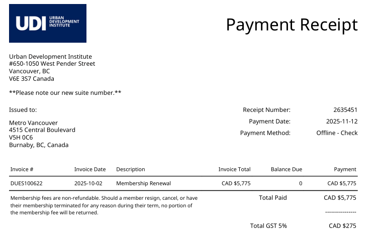 The Metro Vancouver Regional Government is still a UDI member, as I have recently seen the proof of payment through FOI.