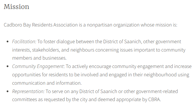 Cadboro Bay Residents Association is a nonpartisan organization whose mission is: